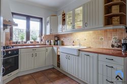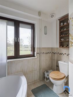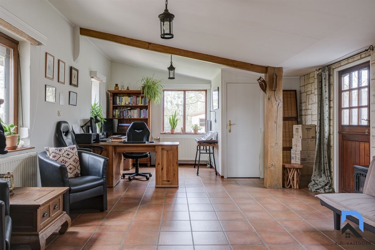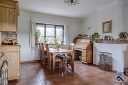 We betreden de woning via de inkomhal en begeven ons naar de leefruimte met veel lichtinval. De keuken beschikt over alle comfort en de knappe stijl past perfect bij het geheel. De praktijkruimte met aparte inkom is een absolute blikvanger. de warme sfeer gecombineerd met een aparte inkom, berging en wasbakje zorgen voor een unieke troef en dit alles met een prachtzicht op het omliggend groen.
