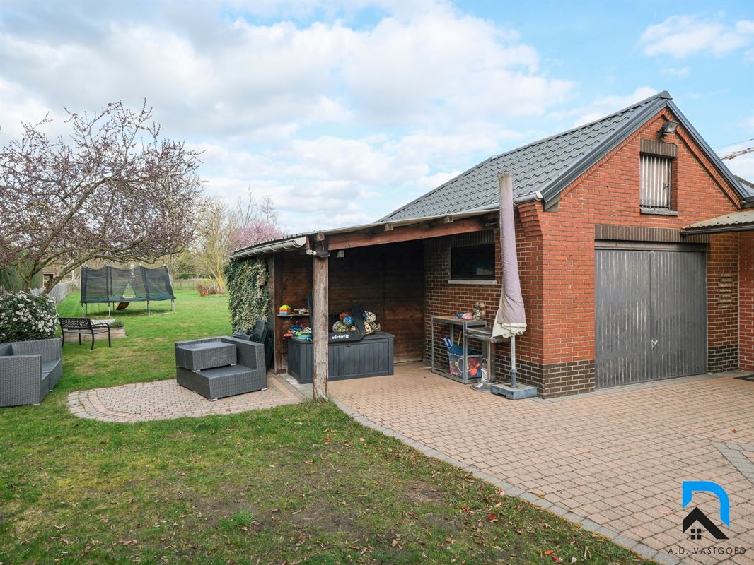 De tuin met zicht op achterliggend groen is een absolute blikvanger. Deze werd met de nodige zorg aangelegd en onderhouden.