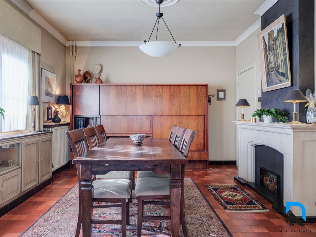 Het gelijkvloers omvat een knappe inkomhal, bureauruimte met mooie erker en karaktervolle glas-in-lood ramen, living met eetruimte, keuken met ontbijthoek, wasplaats en de badkamer. Via een aparte ingang kan de 2e zitplaats bereikt worden. Deze kan ook dienst doen als zorgunit/kangoeroewoning.